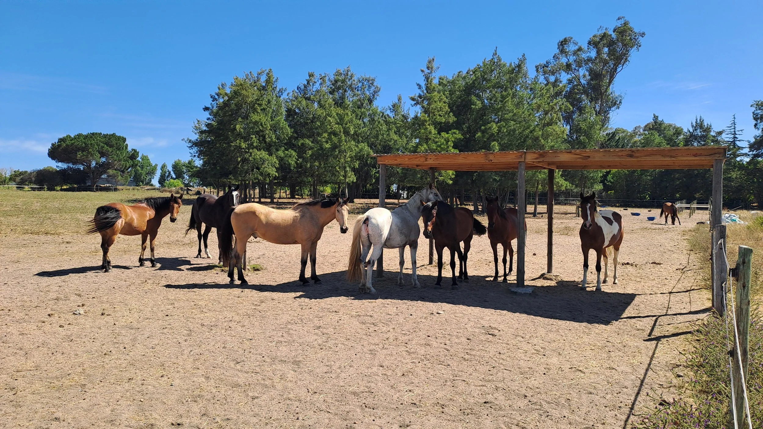 Our in/out horses spend the night in an individual paddock with an open access wooden stable. During the day they go into shared, irrigated grass paddocks. This is the perfect option for horses that get anxious around feeding time, tend to break stable doors and walls or need continuous movement for improved circulation like in older horses.